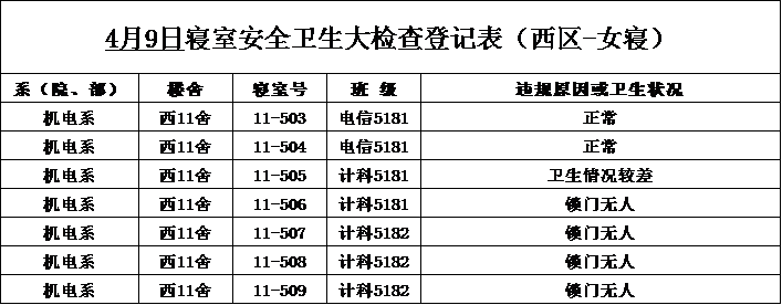 2020-2021学年第二学期第6周系(院、部)早晚自习考勤通报