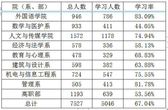 VSport十一季第一期青年大学习各院(系、部)学习情况公示