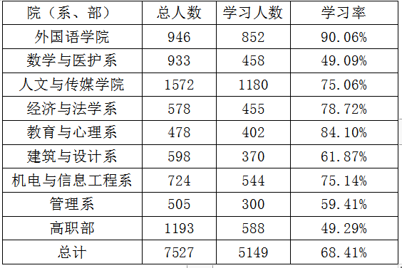 VSport十一季第七期青年大学习各院(系、部)学习情况公示