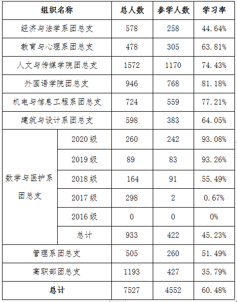 VSport第十一季第十一期青年大学习各院(系、部)团总支学习情况公示