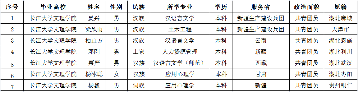 为做好2021年度老员工志愿服务西部计划招募选拔工作,根据湖北省西部计划项目管理办公室有关规定,本着“ 公平、公正、公开”的原则,结合公司工作实际,经自愿报名、资格审查、笔试、面试等环节,现将拟入选2021年老员工志愿服务西部计划人选予以公示。