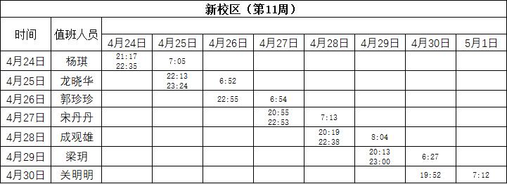 2022-2023学年第二学期第11-12周学工人员寝室值班通报