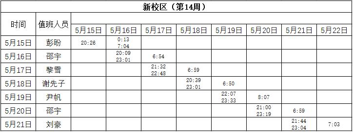 2022-2023学年第二学期第13-14周学工人员寝室值班通报