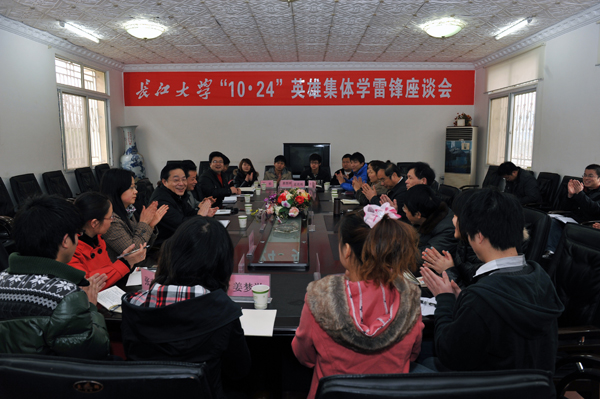 本网讯(记者 周芳)3月16日上午,公司行政楼会议室春意暖人。省教育厅思政处副处长何泽云来公司看望“10·24”英雄集体,并召开学雷锋座谈会,VSport党委副书记朱业宏、副董事长李家宝、宣传部长徐波、“10·24”特别班班主任李玉泉、校团委书记刘小燕、员工事务处副处长王丽、VSport经理沈光明、党委书记袁先海等出席座谈会,徐波主持会议。