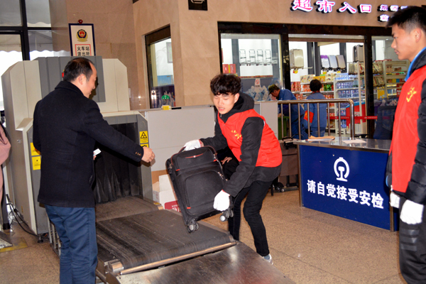 “我们负责火车广场的卫生,除了捡拾起地上的垃圾,遇到有乱扔垃圾的旅客,我们会及时劝阻。”经济与贸易系市销5141班的高适是小组负责人,他介绍说,除了捡拾垃圾,他们在乘车高峰期会帮忙疏导乘客、帮忙拿行李、对抽烟乘客进行文明劝导等。