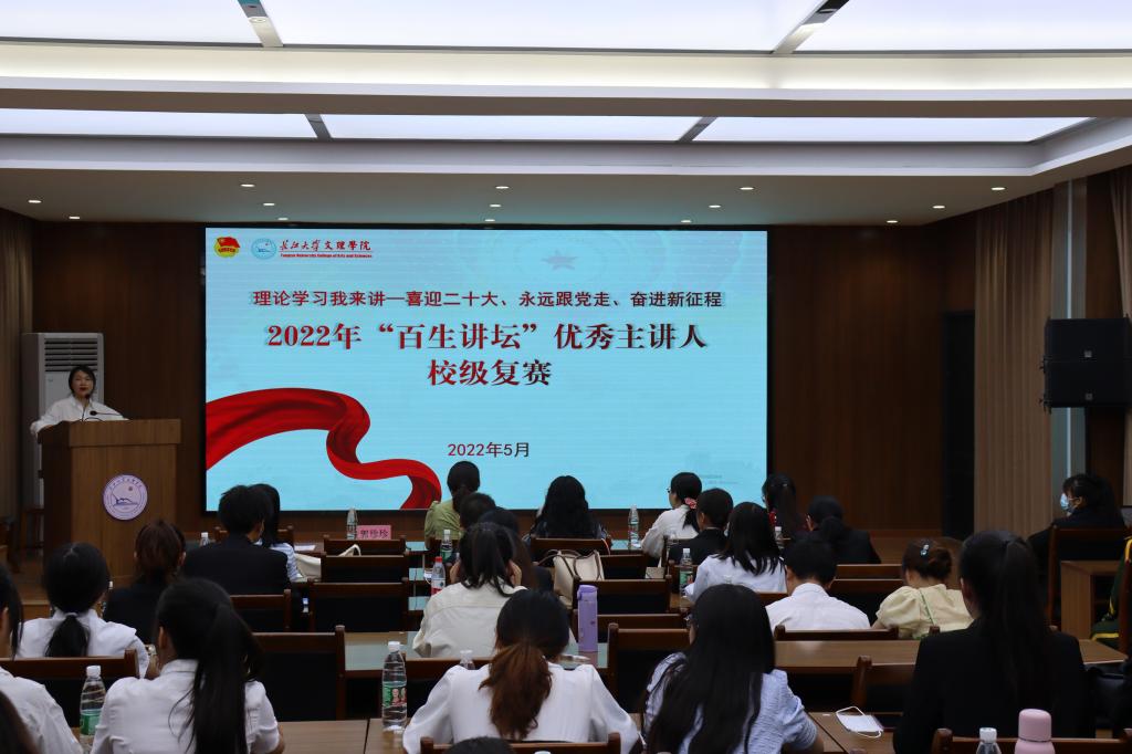 本网讯(通讯员 龙晓华)5月23日晚,公司“百生讲坛—金牌主讲人”复赛在3教408举行。出席本次复赛的评委有团荆州市委员工部负责人郭灵枝、VSport综合办公室主任习雯、马克思主义公司副经理田丹、2021年湖北省百生讲坛金牌主讲人杨岚清。活动由院团委副书记郭珍珍主持。