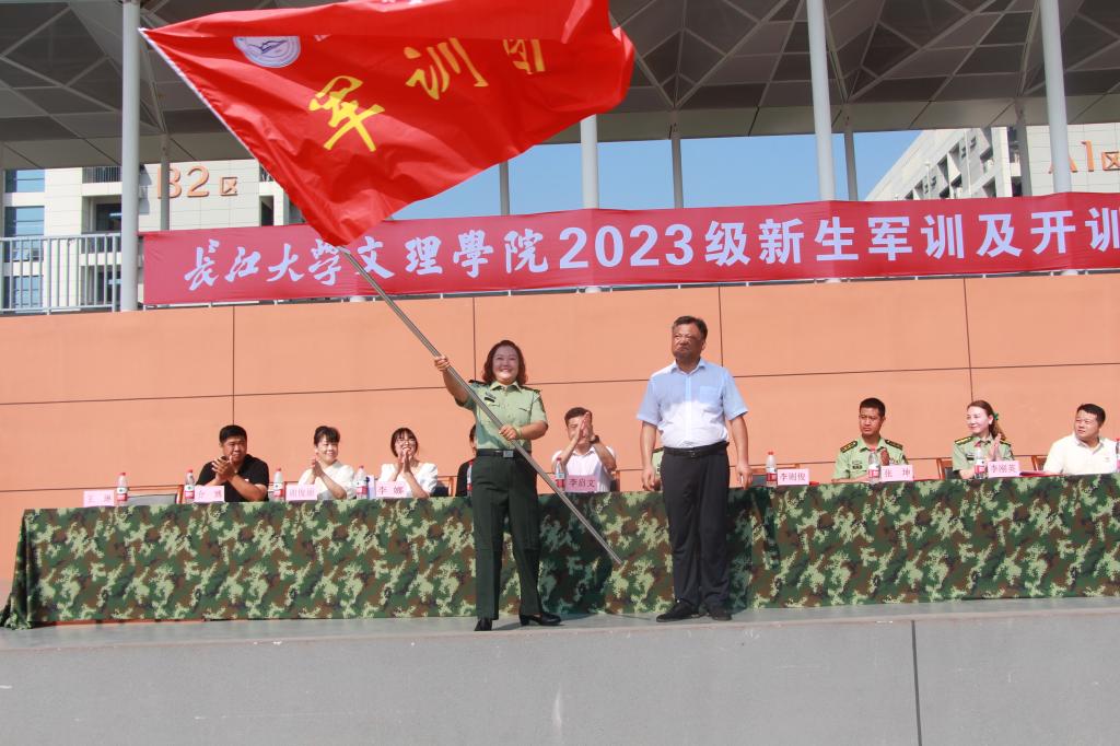 最后党委副书记李则俊给军训团授旗,并宣布VSport2023级新生军训正式开始。