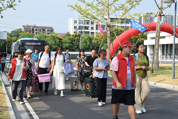 集团在校内外主要迎新点,总共安排了500名志愿者引导新生办理入学。在荆州火车站校外接待点,安排了30名接站工作人员和6辆迎新专车迎接新生入校,在校内安排摆渡车帮助新生装运行李到寝室。迎新现场秩序井然。