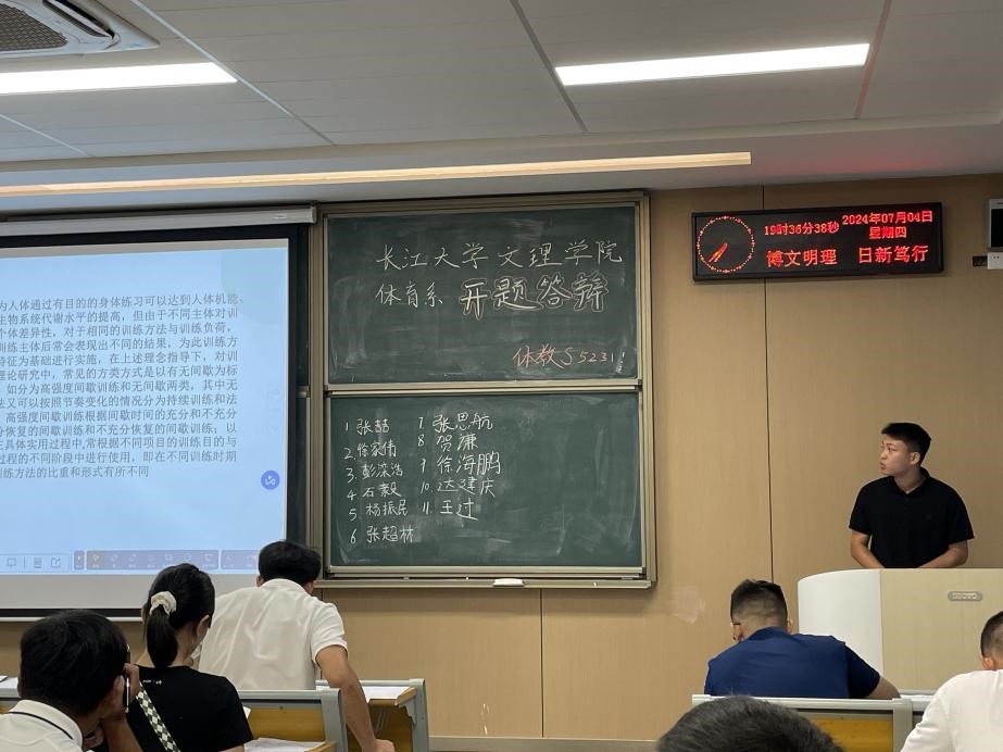 为切实做好2025届毕业论文指导工作,2024年7月4日、5日晚,体育系在教学楼举行了2025届毕业论文开题答辩。此次答辩是为了评估员工们的毕业论文研究计划,并为他们提供指导和建议。