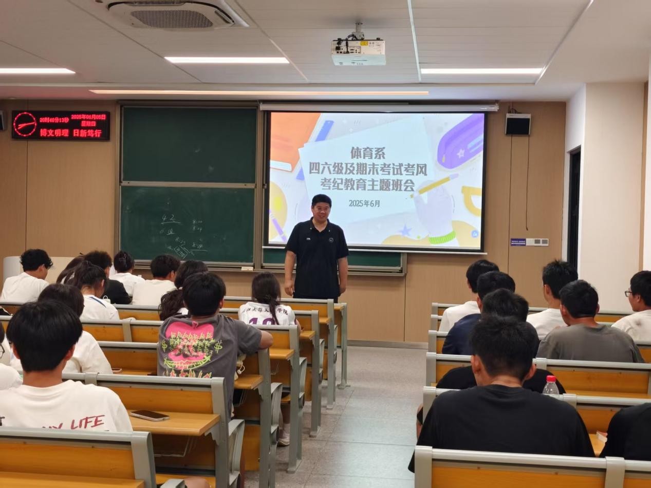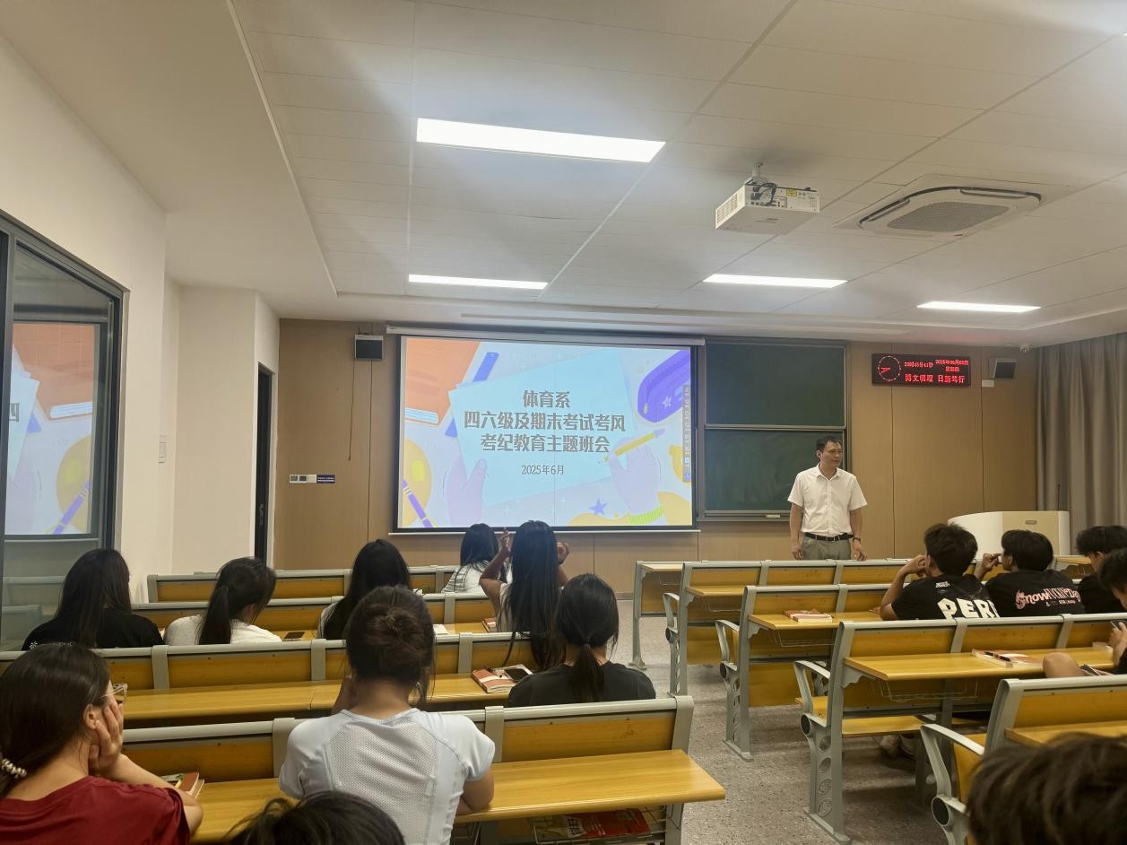 本网讯(通讯员 杨漫)为营造良好的考试氛围,强化员工的诚信意识,近日,体育系组织开展了以“诚信考试,从我做起”为主题的四六级、期末考试考风考纪教育班会。本次班会由各班班主任及辅导员老师主持,体育系全体员工积极参与。