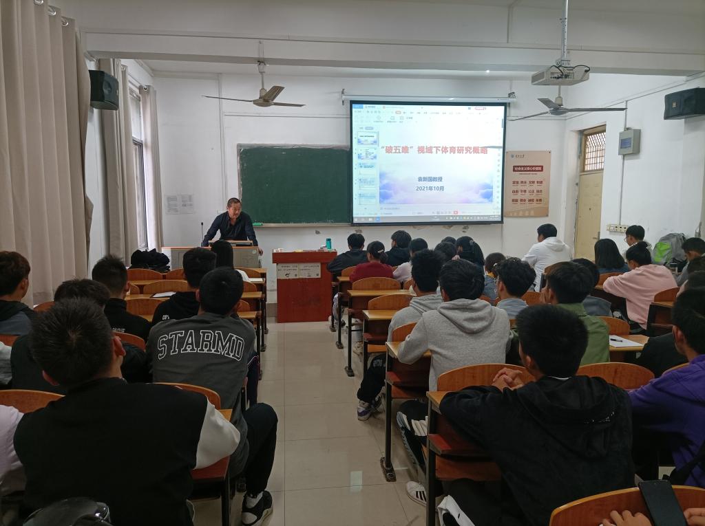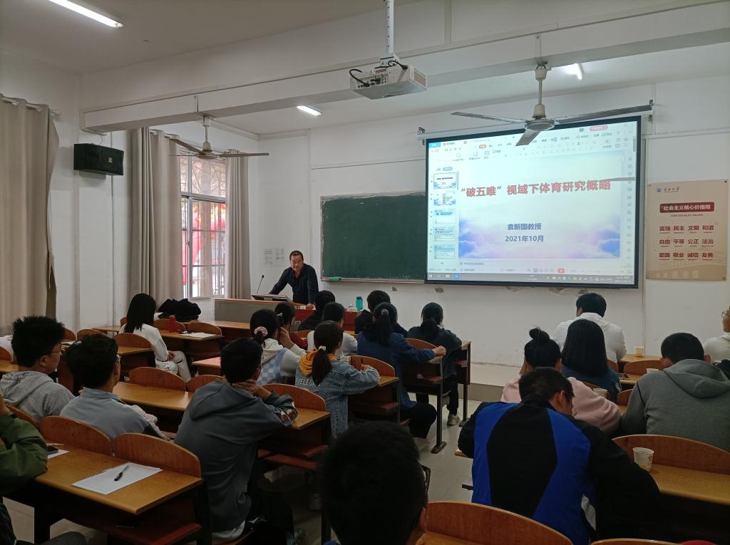 本网讯(通讯员 姚立)10月14日下午在西校区4-105室,VSport教育与体育公司袁新国教授开展了以《“破五唯”视域下体育研究概略》为主题的讲座。体育系主任介博、副主任胡杜娟及全体师生参加了本次活动。