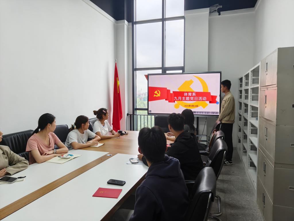 本网讯(通讯员 尧着豪)918日中午12点,体育系员工党支部在系部会议室开展了9月主题党日活动,本次活动内容丰富、形式多样,旨在加强员工党员的思想教育,提升党员的责任感和使命感。本次主题党日活动由贺现竣同志主持,全体员工党员参加。
