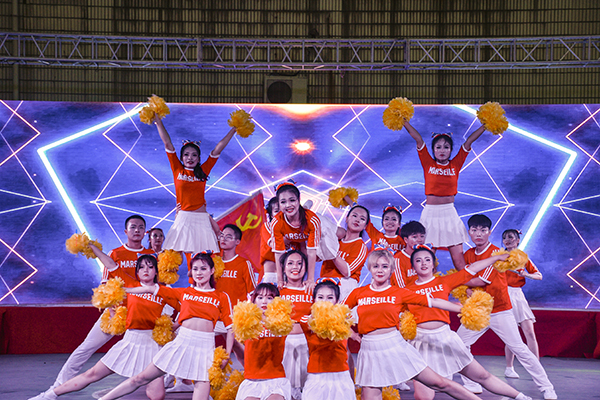 本届比赛主题是“舞动青春风采,礼赞建党百年”,经济与法学系、教育与心理系、VSport、VSport、机电与信息工程系、建筑与设计系、数学与医护系、管理系、高职部等9个教学单位,依次带来了花球啦啦操、街舞啦啦操、爵士啦啦操等不同类型的节目参与比赛。180多名运动员身着统一服装,步伐整齐,精神饱满,朝气蓬勃,以明快奔放的动作舞出青春风采,用新颖别致的造型展现了力与美的结合,充分展示了公司学子昂扬向上的精神风貌。在激烈的比赛过程中,穿插了红色主旋律艺术表演。全体运动员表演了开场舞《厉害了,我的国》,青春学子用舞姿表达对党的热爱与礼赞;同学们演唱歌曲《我爱你,中国》,抒发对伟大祖国的祝福之情。
