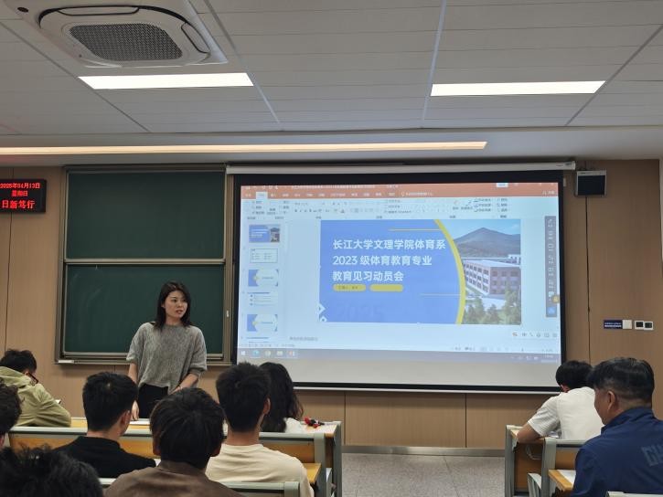 2025年4月14日晚6点,体育系2023级教育见习动员会在1教A-202顺利召开。本次动员会旨在为即将奔赴荆州市五所中小学开展教育见习的66名师范生统一思想、明确任务、鼓舞士气。院系领导、见习指导教师及全体见习生共同参会。