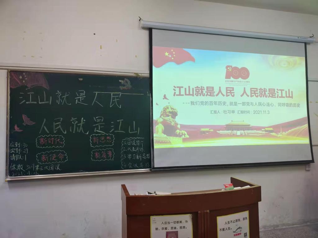 本次团课内容丰富,形式多样。为了让同学们了解诈骗的危害和主要手段,体教5211班班长通过观看PPT的形式向大家讲述了习近平总书记在党史学习教育动员大会中的“江山就是人民,人民就是江山”的重要讲话内容,大家自由讨论,发表自己对于习近平总书记在党史学习教育党员大会的见解,最后体教5211班还一同唱响了耳熟能详的“保卫祖国”。