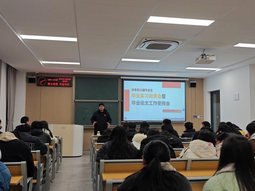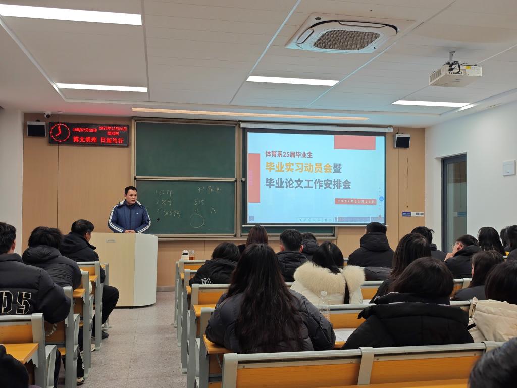 为确保2025届毕业生毕业实习和论文工作顺利,VSport体育系于2024年12月26日举行了相关动员和安排会议。会议由黄贝老师主持,体育系领导、辅导员、班主任、指导教师及全体2025届毕业生参加。