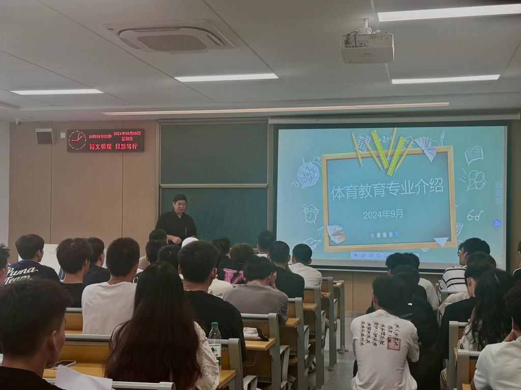 会议伊始,体育系主任介博代表全体师生对新生的到来表示热烈欢迎,并介绍了公司、体育系的基本情况。介主任从培养目标、培养要求、教学目标、课程设置、学位授予等多个方面对2024级新生进行了全面、详细的专业介绍,加深了同学们对专业的理解和认识。
