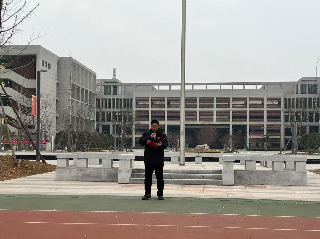 升旗结束后,员工代表尧喆豪发表了热情洋溢的讲话。他表示,作为新时代的体育学子,要时刻保持对祖国的热爱和忠诚,将个人的成长与国家的命运紧密相连,不断提升自己的体育技能和综合素质,为国家的体育事业贡献自己的力量。