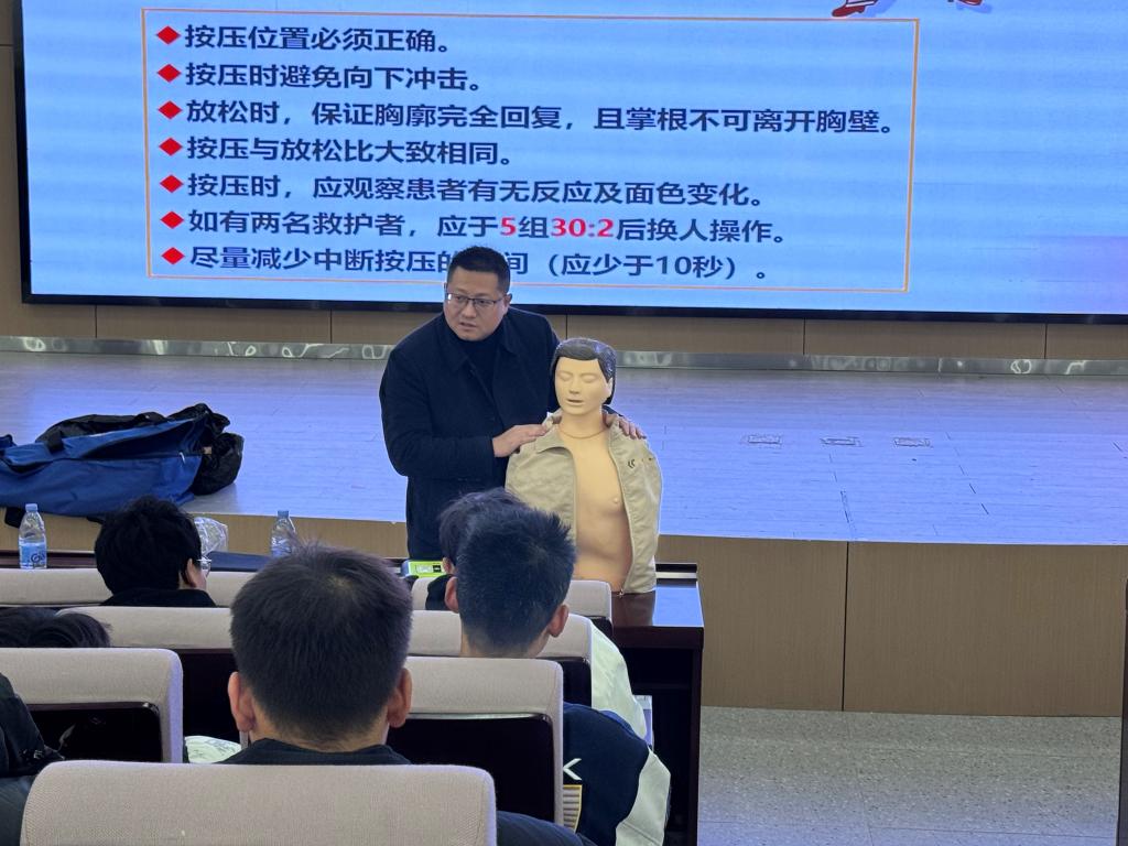 本网讯(通讯员 荣家豪)为提升员工应对突发事件及意外伤害的应急救护与自救能力,掌握基本应急救护知识和技能,切实保障生命安全,助推平安校园建设,12月29日晚上6点,体育系联合沙市区红十字会,在教学楼B112报告厅开展急救培训活动,共有百余名员工积极参加。