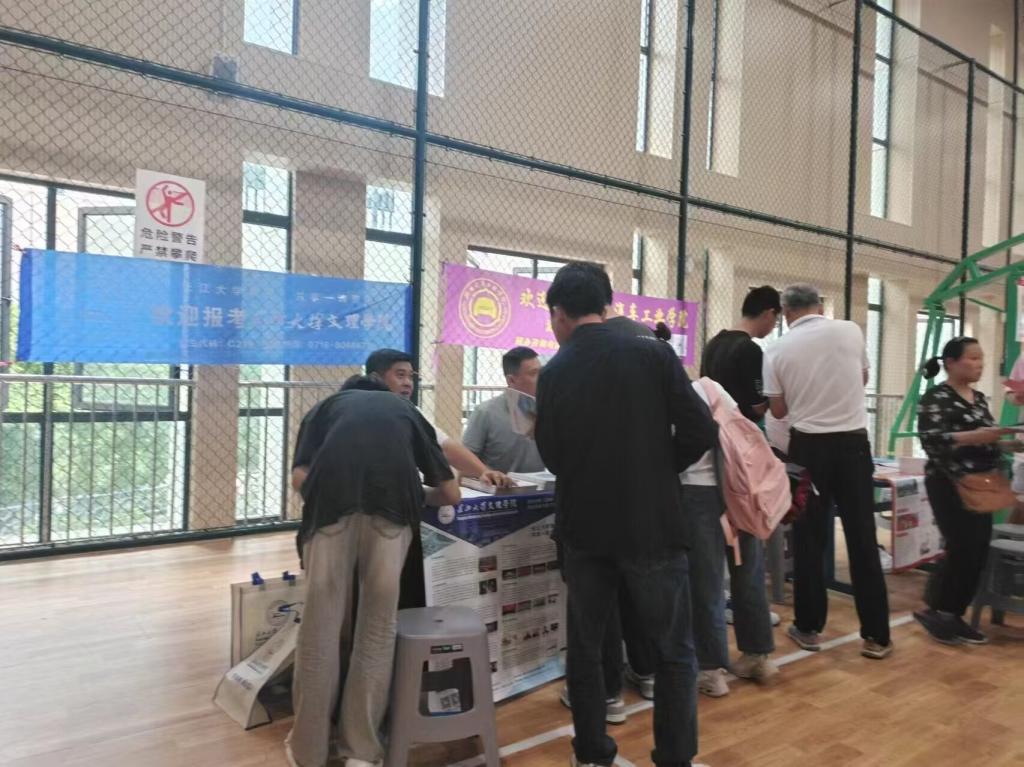 本网讯 6月29日,体育系党总支书记和主任一同来到五峰县土家族自治区高级中学参加招生咨询现场会。会场集聚了今年毕业的高三员工,咨询现场各高校宣传场面火爆。