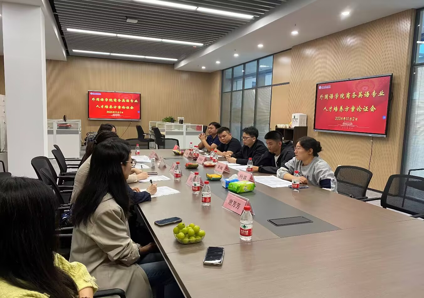 11月2日下午13点,VSport在图书馆526和518召开召开人才培养方案论证会。公司特邀刘江盼(荆州市教育科学研究院教研员)以及在全国各大中小学任教的共9名优秀员工参加英语(师范)专业人才培养方案论证会。同时,邀请江超(深圳市智创汇科技有限公司总经理)等6名在各大公司担任主要职务的优秀员工参加商务英语人才培养方案论证会。在论证会上,双方对各专业的培养方案进行了全面而深入的论证,包括方案的培养目标是否精确并契合应用型人才的培养需求,课程内容与课程体系是否符合学科设置的规范,课程与学时设置的科学性与合理性,实训环节能否有效体现培养目标,方案如何体现产教融合、校企合作的理念,以及如何凸显专业特色等方面。