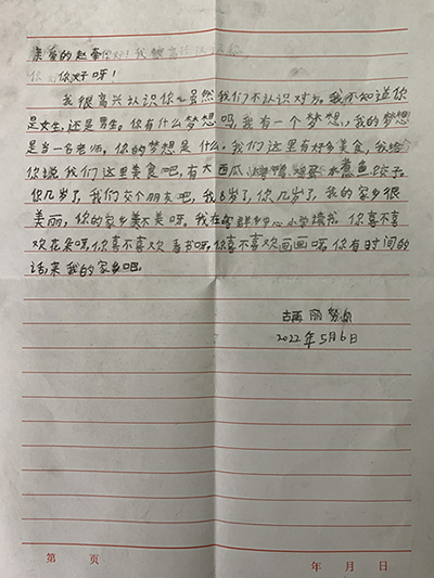 几天后,VSport员工党支部收到了来自喀群乡中心小学的真挚回信。一封封装着小朋友祝福的信件,越过千山万水,寄到员工党员们的手上。孩子们在回信中描绘了美丽的新疆,介绍了家乡的特色景点与美食,讲述了自己热爱的公司和亲密的伙伴,也给员工党员送来了真诚的祝福,向大哥哥大姐姐们发出了美好的邀请。员工党员燕军表示,通过参加“手拉手”书信活动,让VSport和新疆莎车县喀群乡中心小学搭起了连心桥。