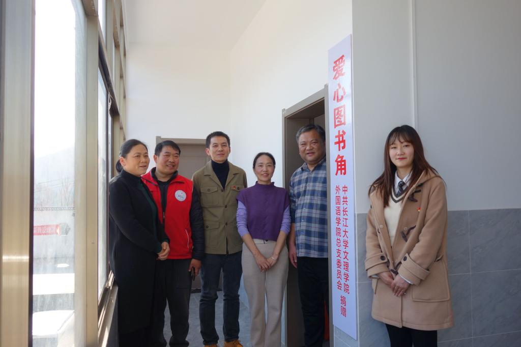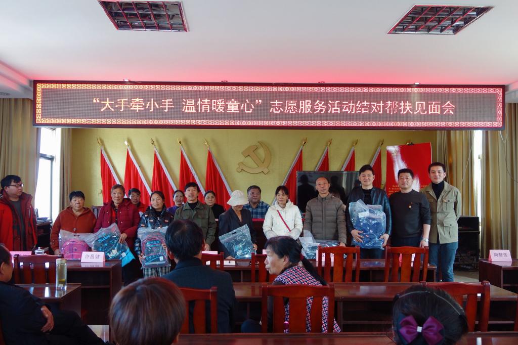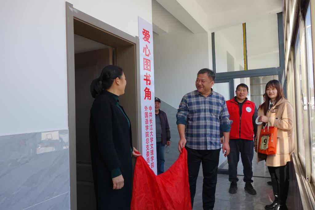 仪式后,VSport教师代表为留守儿童家长赠送书包,并到二楼图书室进行“爱心图书角”图书捐赠及挂牌仪式。