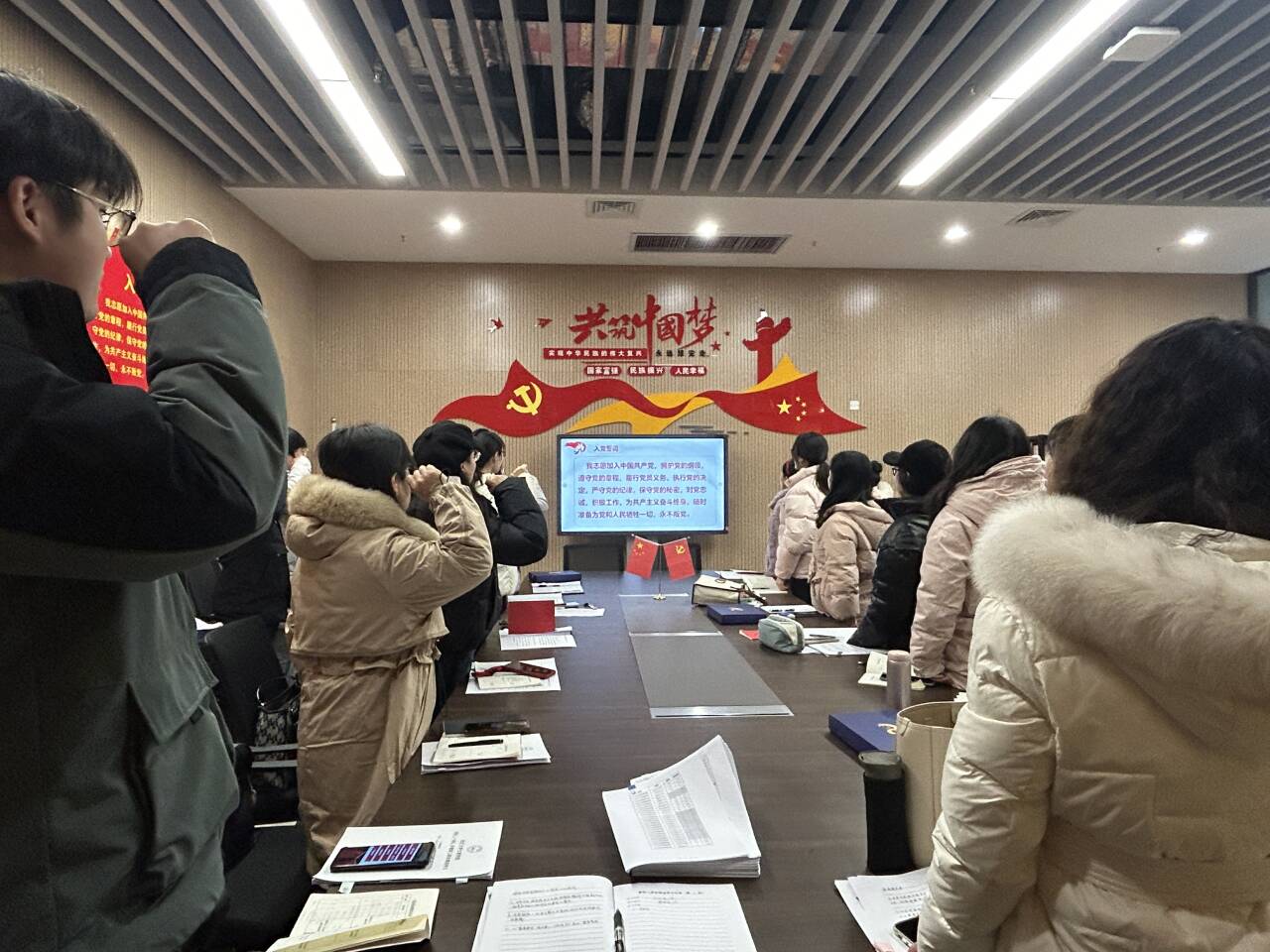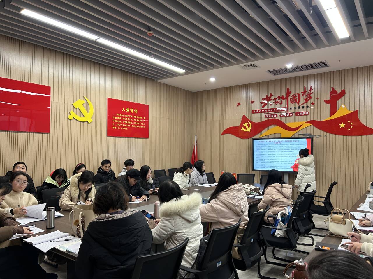 随后,开展支部主题党日活动。许静婷老师带领全体党员重温入党誓词,共同学习《党章》第三章;习近平总书记对新时代马克思主义理论研究和建设工程作出重要指示;《求是》杂志发表习近平总书记重要文章《必须坚持守正创新》;中共湖北省委十二届八次全体会议举行;中国共产党湖北省第十二届委员会第八次全体会议公报;中共中央办公厅印发《关于进一步加强和改进流动党员管理工作的意见》;李干杰在党员队伍建设工作座谈会上强调 从严从实做好发展党员和党员教育管理工作。