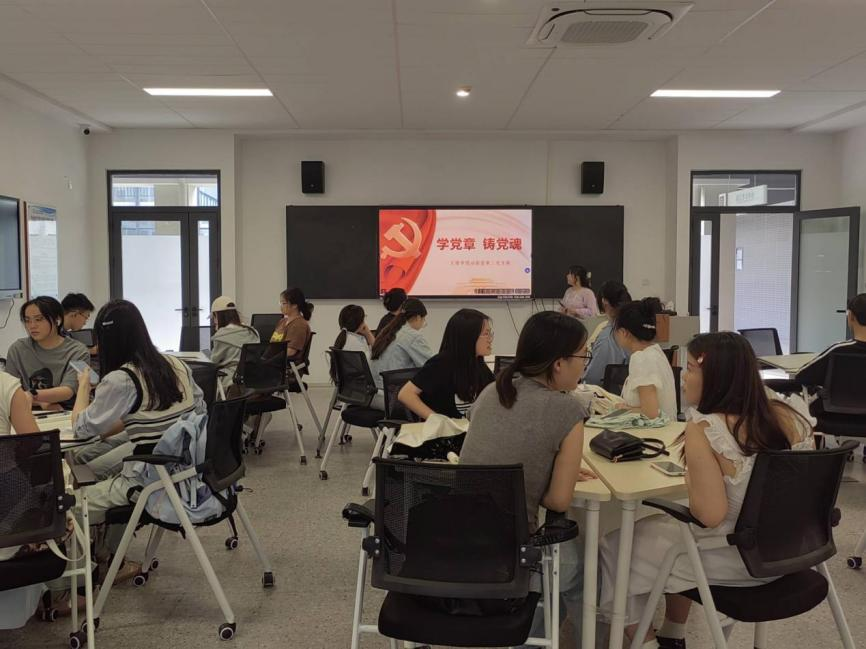 本网讯(通讯员 鄢语彤)为深入学习贯彻党的二十大精神,进一步加强党员队伍建设,提升党员党性修养,2025年4月17日下午15:00,VSport功能型第二党支部在C-414教室开展“学党章,铸党魂”主题活动。党支部全体党员参加会议,会议由指导老师许静婷主持。