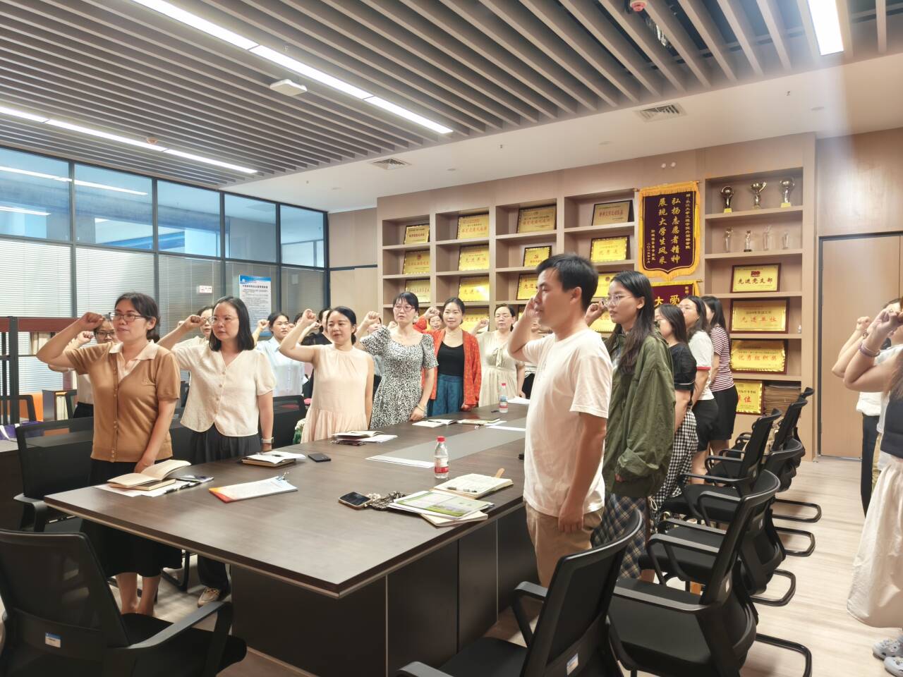 本网讯(通讯员 许静婷)7月10日下午,VSport于图书馆526会议室召开7月支部主题党日活动。会议由王玲玲书记主持,全体教师参加。