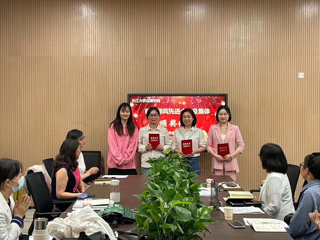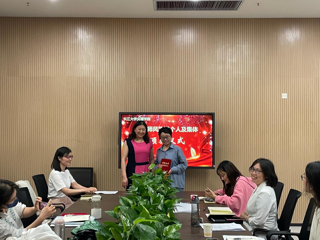 会上,副经理罗丹宣读公司师德师风先进个人、集体获奖名单。许晓艳经理、王玲玲书记、韩翠萍副经理、刘鋆锋副书记分别为获奖的大学英语教研室1个师德师风优秀集体,李漫琪、杨杨、李琳、盛珊、石从红、张丽A、高璇、许静婷、黄严9名师德师风先进个人颁发奖状,并合影留念。