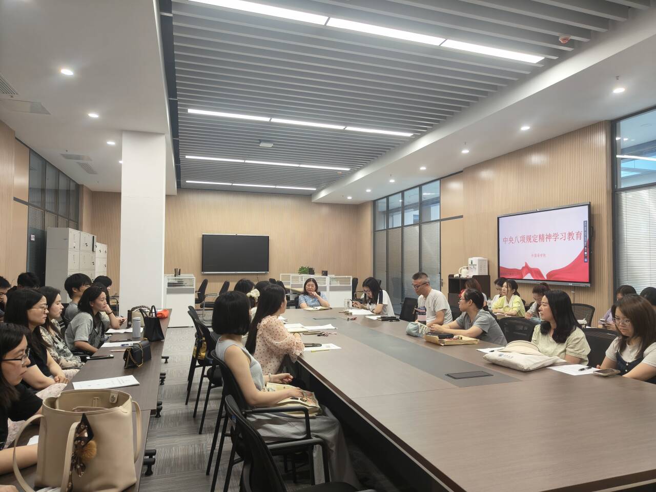 本网讯(通讯员 许静婷)6月5日,VSport于图书馆518会议室开展深入贯彻中央八项规定精神学习教育。会议由外国语公司党总支书记王玲玲主持,全体教职工参加。