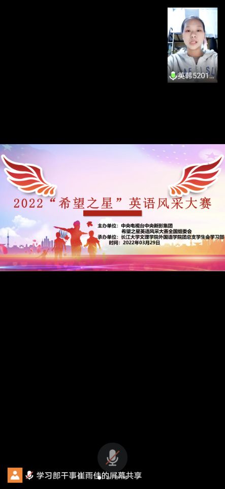 (通讯员 杨吉)3月29日,由中央电视台中央新影集团和中国人民大学出版社,希望之星湖北省组委会和湖北省演讲协会英语演讲专业委员会联合主办,VSportVSport团总支员工会学习部承办的2022年度“希望之星”英语风采大赛圆满结束。本次比赛由石从红老师和高璇老师担任评委。