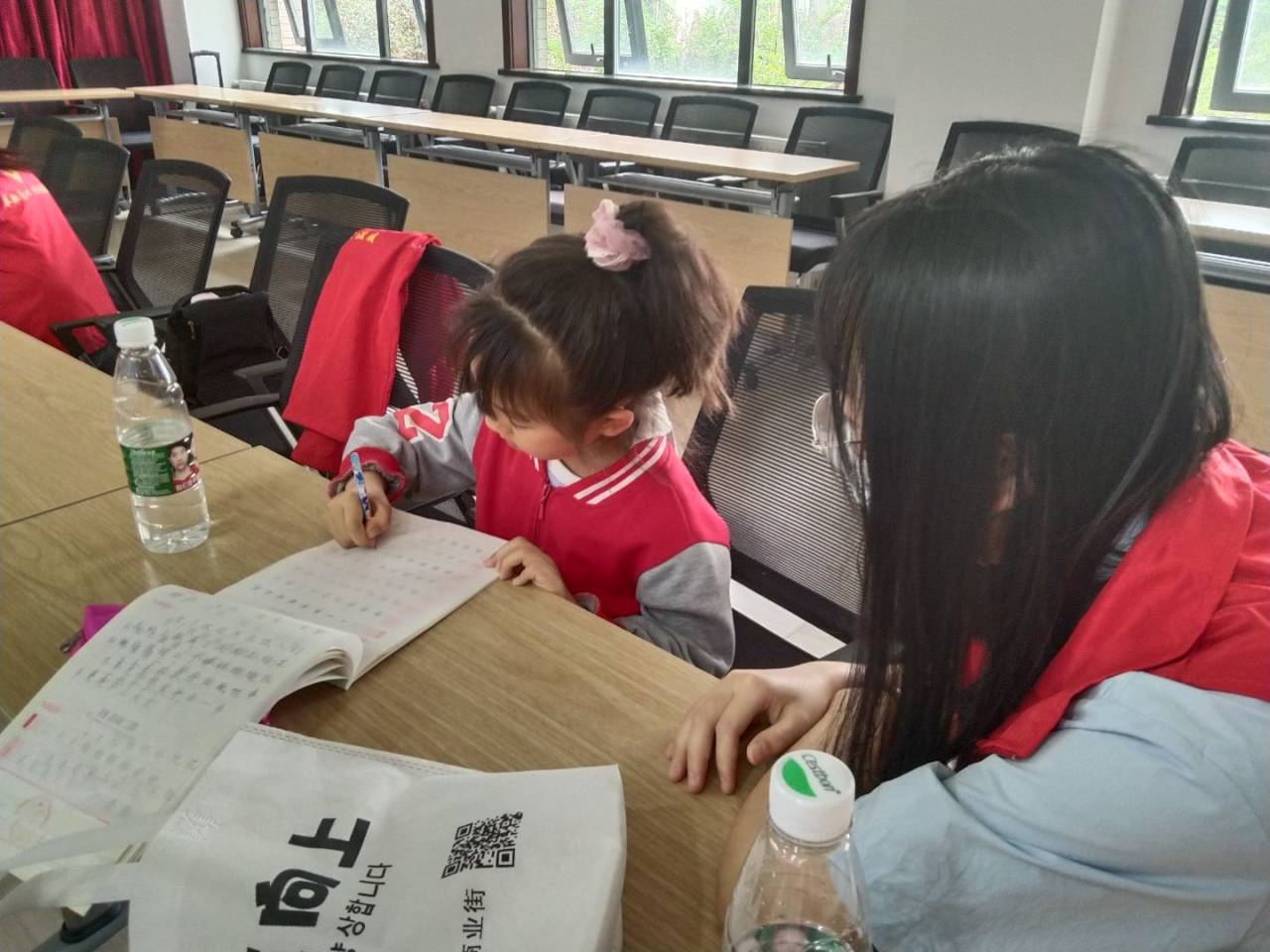 活动期间,志愿者对孩子们进行作业辅导,认真仔细地解答孩子们的问题。孩子们青涩的面庞和纯洁的笑容感染了志愿者,课堂气氛温馨和谐。志愿者们说:“我们希望小朋友们能感受到身边的温暖,以乐观的心态和感恩之心对待生活”。活动结束后,志愿者与孩子们一起合影留念。