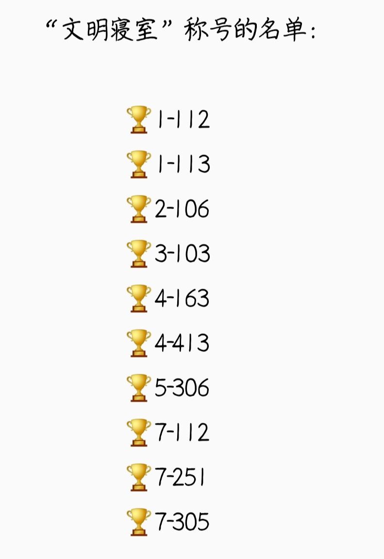 根据员工会查寝记录及实际情况公司共评选出10个文明寝室,并颁发“优秀文明寝室”标牌。名单如下: