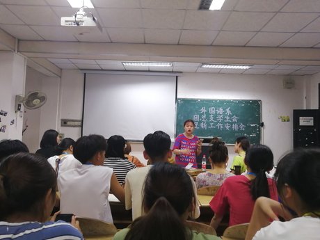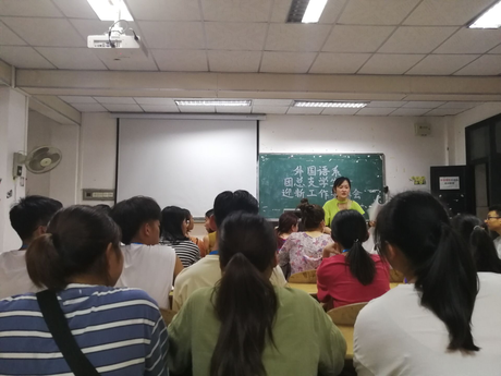 (通讯员 辛叶 董绪萱)一年一度的新生报到即将到来,为了更好的开展迎新工作,9月4号晚上七点,外国语系党总支副书记王玲玲和新生辅导员拓颖老师,雷昕老师,员工会主席团以及各部门部长在一教308教室进行迎新工作安排。