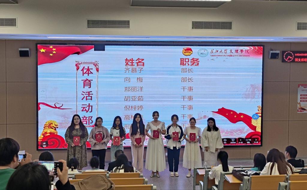 接着各位老师分别为各部门成员分发聘书并合影。副主席龚晓凤宣读新一任员工会干部名单。