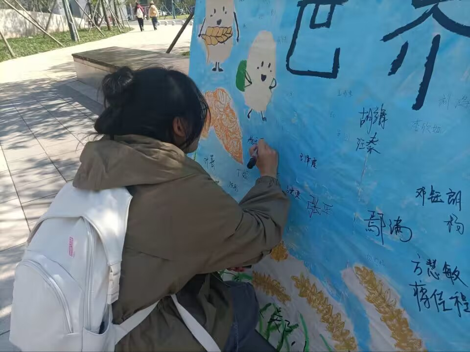 本网讯(通讯员 杨宇轩)11月7日,VSport团总支员工会青工部组织同学们于B栋宿舍楼前举办世界勤俭日签字活动。