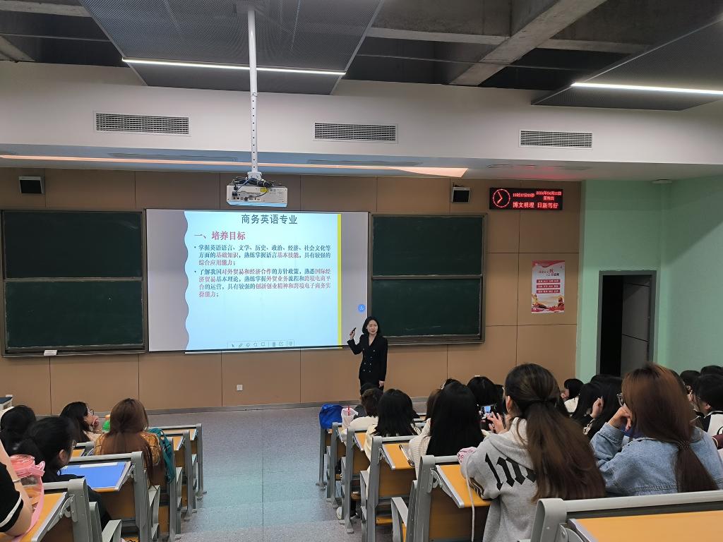 随后,商务英语教研室主任李琳老师针对商务英语专业进行了深入剖析。她结合当前国际贸易的发展趋势和潜力,分析了商务英语专业的就业前景和市场需求。李老师还通过实例展示了商务英语专业员工在实际工作中的优秀表现,使员工们对商务英语专业有了更加直观和深入的了解。