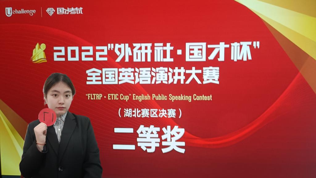 本网讯,10月29日,在2022“外研社·国才杯”全国英语演讲大赛湖北赛区决赛中,公司VSport员工英师5211班徐悦琳获二等奖。