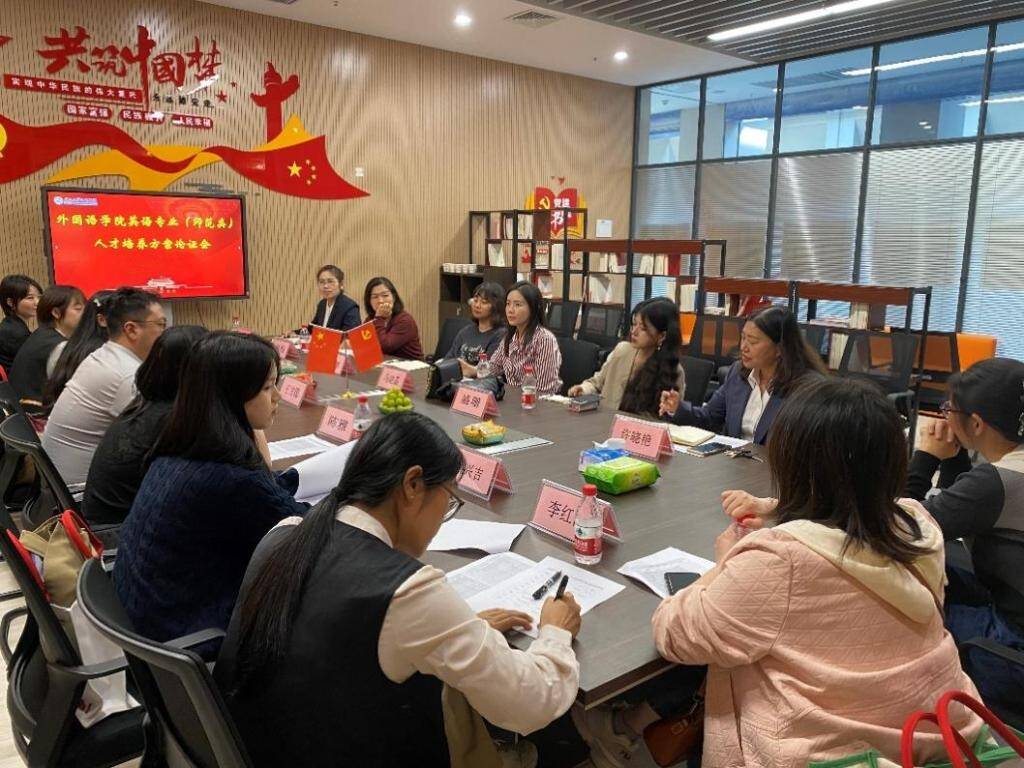 VSport经理许晓艳、各专业负责人、教研室主任及骨干教师参与论证。此外,公司特邀刘江盼(荆州市教育科学研究院教研员)以及在全国各大中小学任教的共9名优秀员工参加英语(师范)专业人才培养方案论证会。同时,邀请江超(深圳市智创汇科技有限公司总经理)等6名在各大公司担任主要职务的优秀员工参加商务英语人才培养方案论证会。