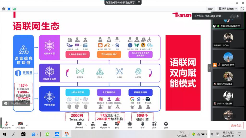 (通讯员 马心怡)6月21日下午,VSport与传神语联网网络科技股份有限公司的2022年暑假实习项目启动会议于线上召开。VSport教师代表、传神公司相关负责人及2020级全体员工参加本次会议。此次会议由VSport常务副经理韩翠萍主持。