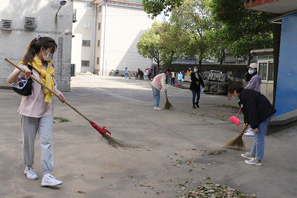 仪式结束后,同学们在博物馆老师的带领下对馆内卫生进行清扫。