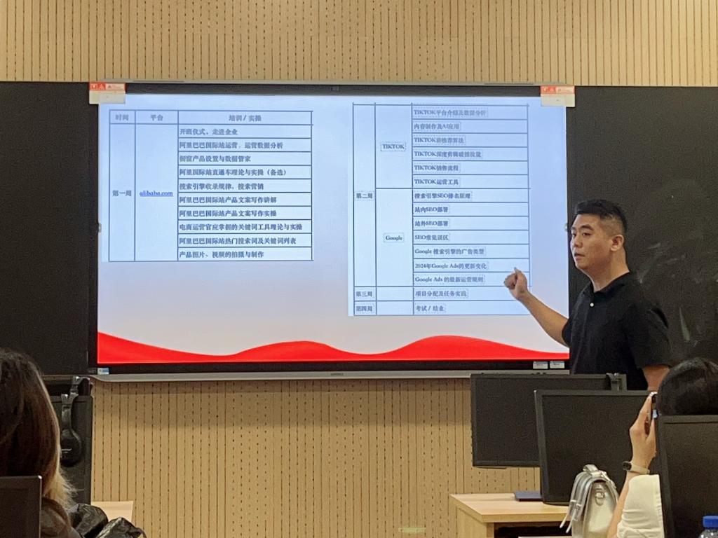 首先,VSport经理许晓艳详细介绍了公司在培养员工国际视野、提升跨境电商技能方面的规划,并对本次培训表示了高度的肯定和期望,鼓励师生珍惜学习机会,不断提升专业素养和实践能力。