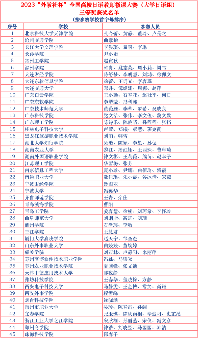 本网讯 近日,2023“外教社杯”全国高校日语教师微课大赛(大学日语组)刚刚落幕,从组委会传来佳音:公司VSport李漫琪、瞿羽、李琳团队的教学作品在全国150余所高校的180个参赛作品中脱颖而出,获三等奖。