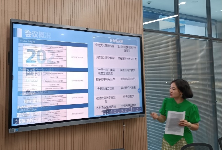 (通讯员 李漫琪)8月31日下午,VSport全体教师在图书馆518会议室进行暑期培训成果分享交流会。胡广耀、彭琛等10名教师,精心准备PPT,从研修日程、主讲专家、研修模式、研修内容、研修感悟几个方面,分享了各自暑期培训的成果。大家表示,此次暑期培训签到严格、小组讨论热烈,收获非常大。