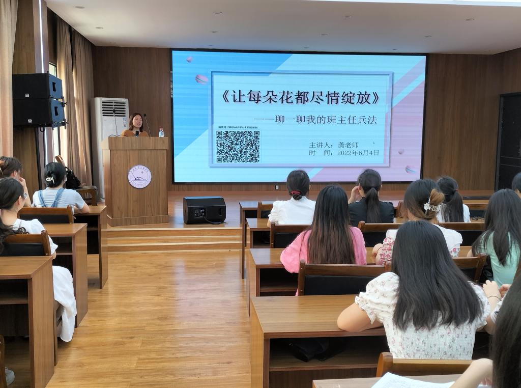 讲座伊始,龚老师通过两个班级比赛视频引出本次讲座主题。提到作为英语教师应做到“一夸、二作、三谈、四培养”,学会将英语与我国文化相结合,分析当今英语学习现状,培养激发员工学习英语兴趣。随后,结合员工具体案例,强调作为一名教师要善于观察员工的身心变化,及时与员工沟通交流。最后,龚老师从个人经历出发,与同学们分享作为一名教师的亲身感受,希望同学们无论做什么事都要力求做到极致。讲座过程中,在场员工们认真聆听、融入其中,更体会到了教师职业的意义所在。