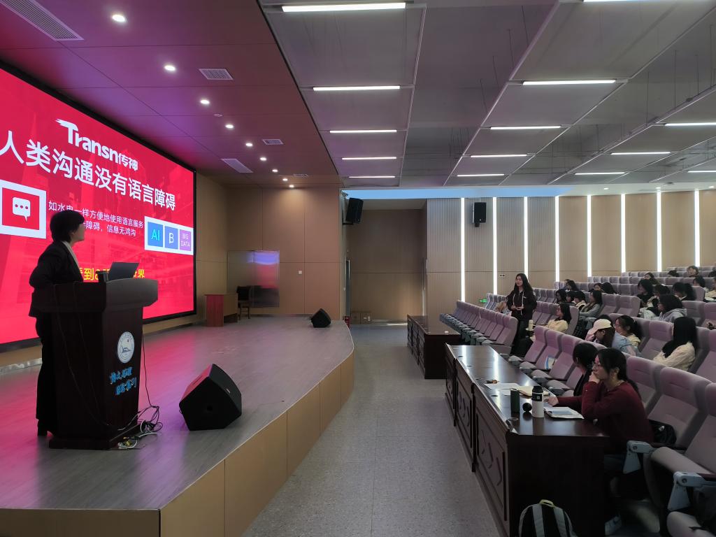 闫栗丽以《AI驱动下的语言服务行业转变—适者生存》为题,介绍了AI技术如何改变语言服务行业,分析了AI时代对外语的需求,引导员工增强外语人的使命感,认真进行职业规划,利用AI提升自我的数字素养,寻找个人差异化的竞争优势,拥抱变化,适应社会需求。