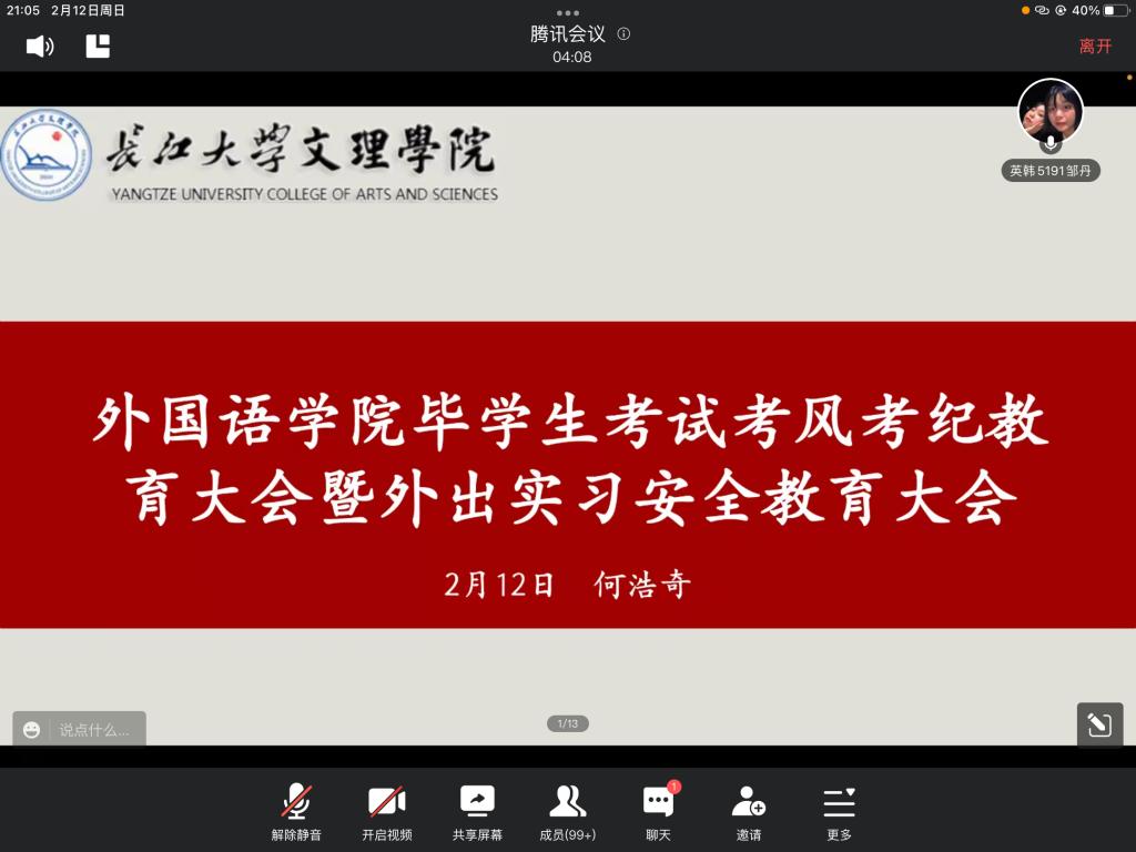 (通讯员 胡世丹)为引导员工扣好新学期“第一粒扣子”,确保公司开学安全有序。2月12日晚七点,VSport各年级组织开展“开学安全及考风考纪教育”主题班会,此次班会由各班辅导员主持。
