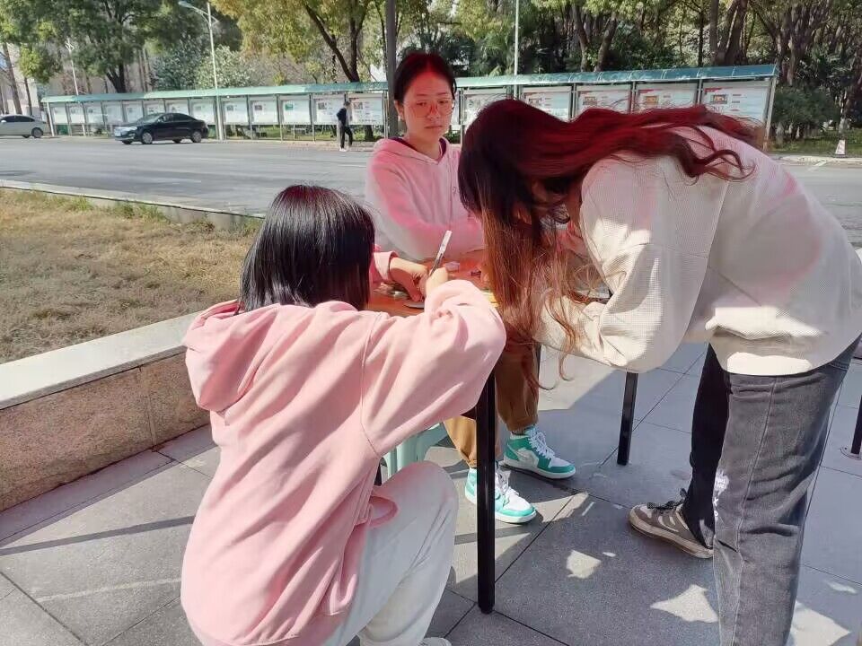 活动期间,参与者们领取树叶型便利贴,写下自己的祝福和愿望后张贴在指定地。现场活动志愿者们向同学们科普保护环境小知识,普及绿色环保理念。
